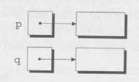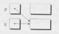 그 후 q가 p에 할당되면 두 포인터 변수는 모두 아래쪽 메모리 블럭을 가리킨다.